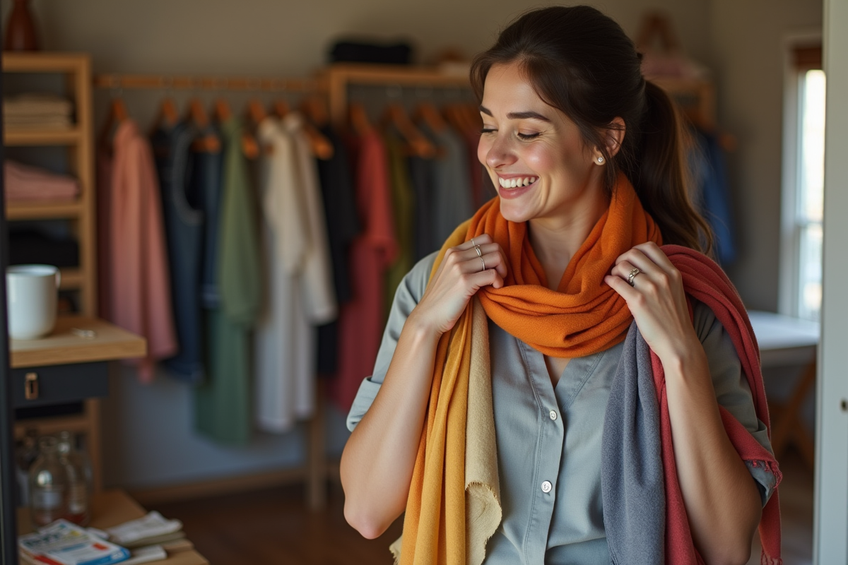 Ne laissez pas la couleur dicter votre style : adaptez-la à votre personnalité. Si votre garde-robe fait la part belle au noir, misez sur une touche de bleu vif ou de rose pâle pour casser la routine. Les adeptes du naturel optent pour le beige, le brun, les verts doux. Les amateurs de contrastes osent l’accessoire fuchsia sur une tenue marine, ou l’écharpe moutarde sur un manteau en lin.
